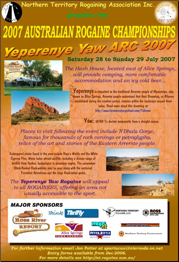 Support Events For other events in and around Alice Springs during the Rogaining Championships; |
